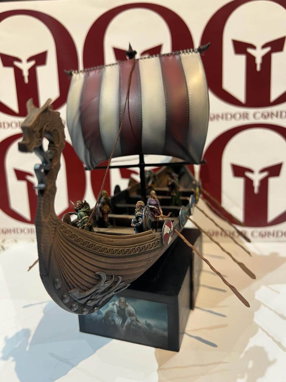 La figura de este barco vikingo representa la icónica nave que llevó a los intrépidos guerreros nórdicos a través de mares desconocidos. Cada detalle, desde el intrincado diseño de la proa con cabeza de dragón hasta las velas ondulantes y los remos listos para la acción, evoca el poder y la valentía de los vikingos en sus incursiones y exploraciones. Ideal para coleccionistas de historia y entusiastas del modelismo naval, esta pieza es un tributo a la ingeniería avanzada y el espíritu indomable de una civilización que dejó una huella imborrable en la historia.
