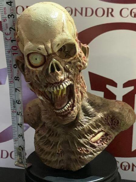Este busto de zombie captura con impresionante detalle cada aspecto aterrador de los no-muertos. Una pieza imprescindible para los fanáticos del terror y el coleccionismo.