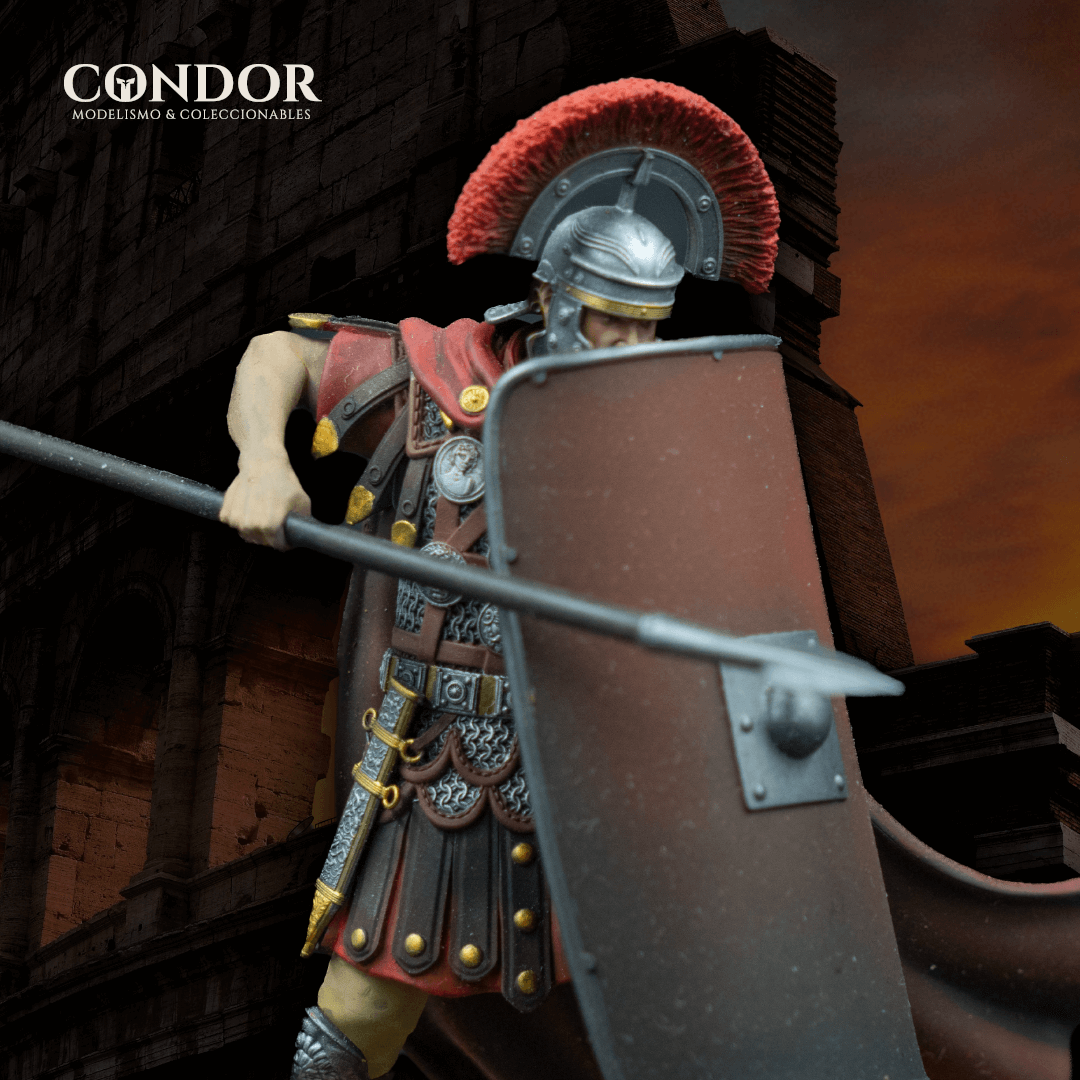 La figura de un centurión romano es una representación auténtica del liderazgo y la estrategia militar en la antigua Roma. Con un diseño meticuloso que incluye su distintiva armadura, casco decorado y escudo, esta figura refleja la grandeza de uno de los oficiales más respetados del ejército romano. Perfecta para coleccionistas de historia militar y amantes del modelismo, esta pieza ofrece una mirada única a la vida de un centurión que lideró a sus tropas en batallas históricas. Añade esta figura a tu colección y revive la época de la antigua Roma con una obra maestra del modelismo.